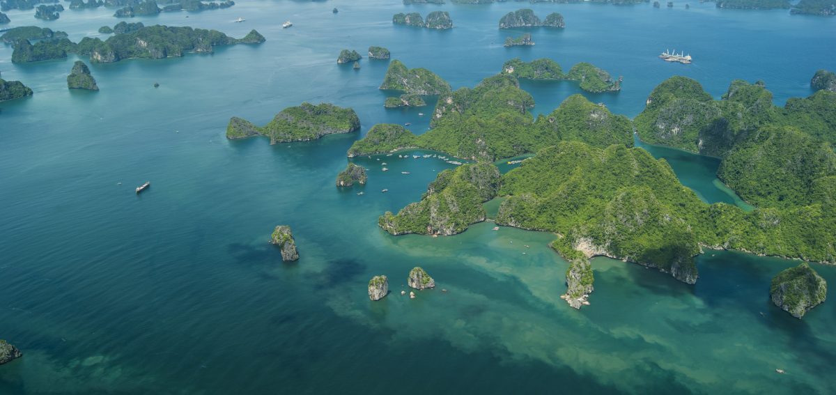 Fly-over the scenic Halong Bay. A fantastic way to see the dramatic islands and limestone peaks of the bay.