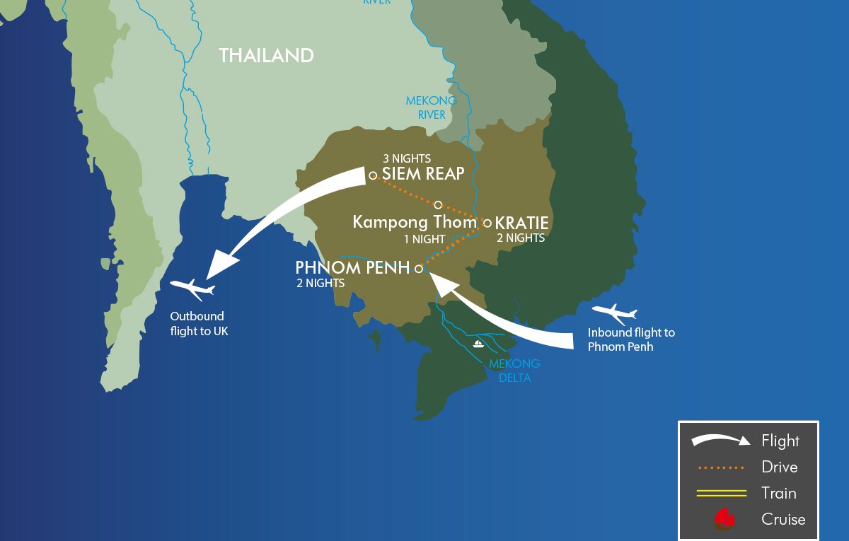 Take your transfer to the airport for your flight back to the UK at the end of your Discover Cambodia tour.