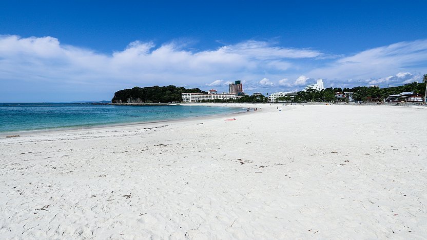 Shirahama is a well developed onsen resort south of Osaka, and one of Japan's biggest. In Japanese, Shirahama means "white beach", and the town is indeed set on a 500 meter long white sand beach, where nightly fireworks are held during summer. First mention of the town's hot springs was recorded over a thousand years ago and Shirahama onsen is known as one of the three oldest in the country. There are six bath houses with hot spring baths open to the public, most of which have only indoor facilities. However, two outdoor baths, the coastal Sakinoyu and the Shirasuna on the sand beach, are of particularly popular with visitors.