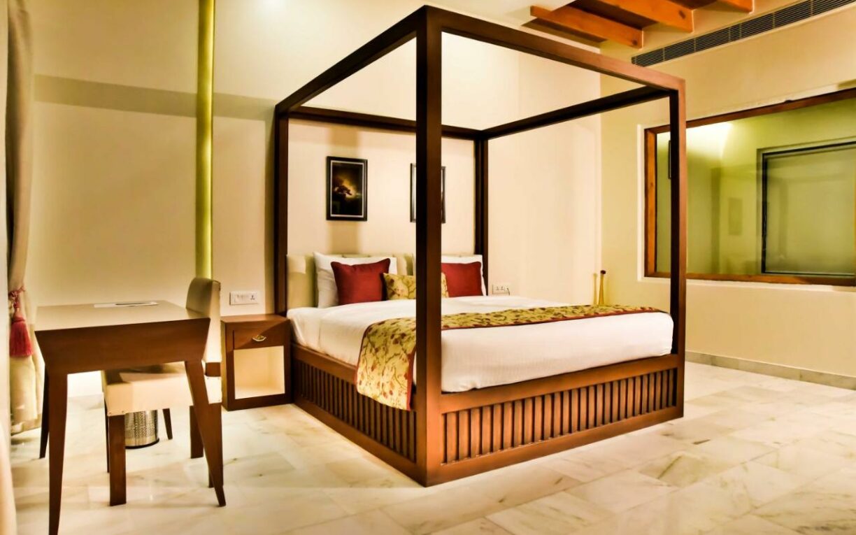 Abhyaran Resort & Spa in Ranthambore is a 4-star sanctuary nestled in the heart of nature that features well-appointed rooms, each equipped with modern amenities, including a flat-screen TV, a functional work desk, a spacious wardrobe, premium toiletries, and a serene view of the surroundings. Immerse yourself in the tranquility of our spa, dine on exquisite cuisine in our restaurant, and relax in the evening at our outdoor lounge.
